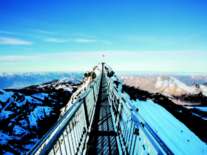 Die grandiose Gletscherwelt ist vom Genferseegebiet, Greyerzerland und vom Berner Oberland aus leicht erreichbar. In einer Viertelstunde schaukeln Sie von Col du Pillon auf 3000 Meter Höhe; nur wenige Minuten vom futuristisch anmutenden Restaurant Botta – entworfen vom Stararchitekt Mario Botta – öffnet sich ein atemberaubendes 360-Grad-Panorama auf die schönsten Alpengipfel: Matterhorn, Eiger, Mönch, Jungfrau, Grand Combin, bis hin zum Mont Blanc. Weitere Highlights: die Hängebrücke Peak Walk by Tissot, der Spaziergang über den Gletscher sowie ein anspruchsvoller Klettersteig.