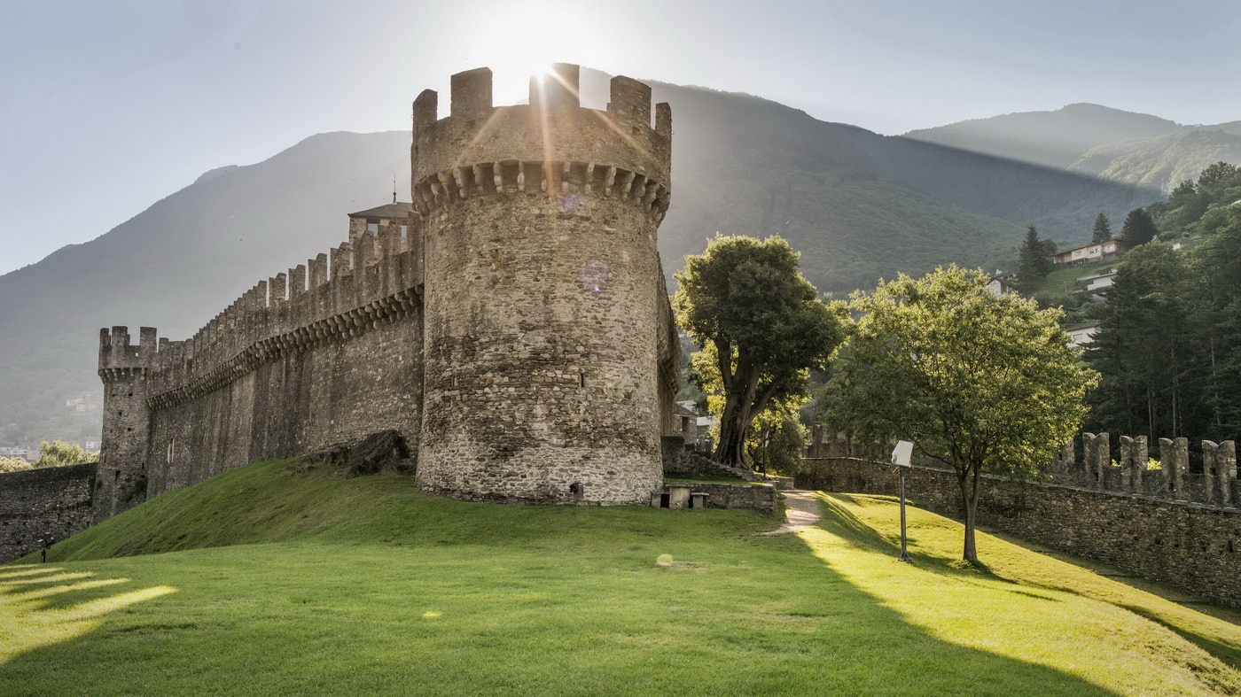 Die wohl authentischste Stadt im Tessin will erobert werden. Mediterraner Flair und Leichtigkeit liegen in der Luft. Palmen, Cafés, der Duft von Espresso – Sie sind am Tor zum sonnigen Süden angelangt. Malerisch liegt das zinnengekrönte Castello auf dem 90 Meter hohen Hügel Montebello über den Dächern der Altstadt. Mit dem wehrhaften Gesicht ist Montebello die markanteste von den drei Festungen, verkörpert sie doch sämtliche Vorstellungen einer Ritterburg: im Zentrum der Adelssitz, Innenhof, Palazzetto, Burggraben, Wehrtürme. Es lässt sich hier ausgiebig rumspazieren, von hier geniesst man einen grandiosen Blick, bei gutem Wetter sogar bis zum Lago Maggiore. Vor dem Abstieg zwischen Weinberge und Fahrstrasse blickt man auf die Burg Sasso Corbaro, sie thront majestätisch über der Stadt. Eine Wehrmauer legt sich um den streng quadratischen Bau, dominiert von einem Bergfried. Auch hier gibt es Ausstellungsräume und ein hervorragendes Restaurant. Und die beste Sicht auf die Stadt. Weiter darf das Auge in die Alpentäler schweifen und bis zum Zusammenfluss der Flüsse Ticino und Moesa. Dann folgen Sie dem Lockruf des majestätischen Castelgrande inmitten der Tessiner Hauptstadt. Auf einem mächtigen Felsklotz dehnt sich das in Terrassen gegliederte Burgareal aus. Imposante Mauerzüge teilen die Anlage in drei Höfe auf, mit zwei Türmen, diversen Gebäuden, der gewaltigen Murata, Museum, Gaststätte. Zweifelsohne lösen das mächtige Gemäuer und die Grünflächen über den Dächern Bellinzonas ein Staunen aus. Und nach den Burgen? Polenta, Risotto, Espresso gefällig? Sicher finden Sie irgendwo in der Altstadt, wo am Samstag jeweils der Wochenmarkt stattfindet, ein reizendes Ambiente.