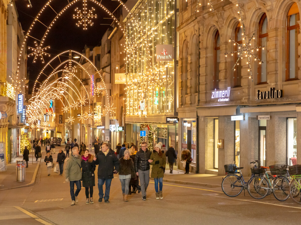 Wenn am 28. November geschmückte Stände ihre Auslagen eröffnen, fängt für die Baslerinnen und Basler die Weihnachtszeit an. Pünktlich zur Ouvertüre des Weihnachtsmarktes taucht die berühmte Beleuchtung aus den 1960er Jahren die Innenstadt in goldenen Glanz.